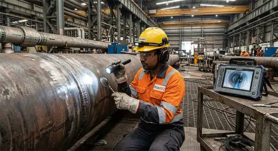 The foundation of quality assurance. Our certified inspectors conduct rigorous direct and remote visual examinations (RVI) to evaluate surface conditions, structural alignment, and weld quality according to the strictest global codes.